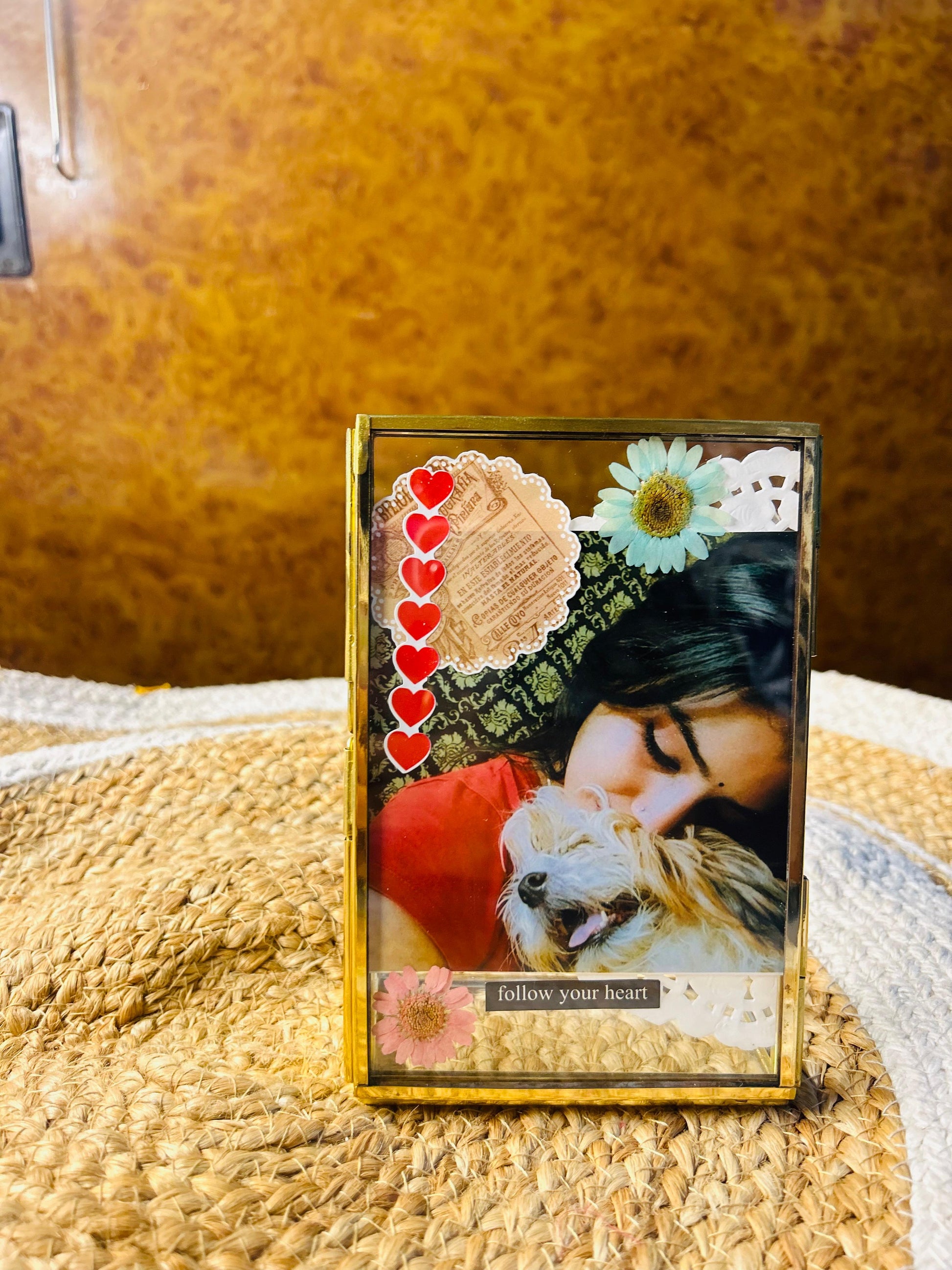 this vintage-style standing glass frame can be fully customised with your photo, message, or both. Each piece is thoughtfully crafted to give an elegant, old-world charm that complements any space.